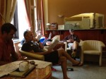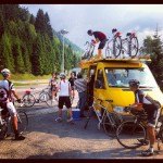 Vrsic Pass (the Queen’s Stage). Today was an epic climb up Vrsic Pass. 24 numbered hairpin turns on the way up to the top of the pass (all of those hairpins were cobbles as well, which added to the ambiance of the day) and 26 on the way down. There’s an embedded video of the descent, which included my crashing hard after my front tire went flat. About a minute after I was patched up, Brad took a more serious spill and ended up with 4 stitches and a new tooth (courtesy of a 3-D printer in the dentist’s office which Brad was pretty excited about). Scary but glad that everyone ended up ok.