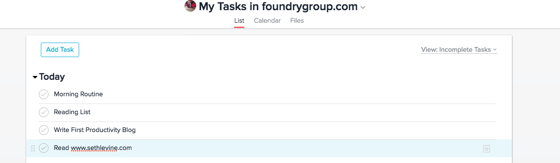 And not just for the obvious “time shifting is bad for productivity” reasons that others have written about. It’s because email isn’t designed to help you organize and prioritize your work life. For that you should be using some kind of task manager or list tool. I personally use Asana for this but you could use Trello, Wunderlist, etc. to the same effect. Every morning instead of jumping into email I run through a “morning routine”. This involves looking at my calendar for the day and then opening up Asana to organize my priorities for the day (including anything left over from the day before). Anything that’s likely to take more than 5 or 10 minutes I try to block time for explicitly on my calendar. I can easily move around the order of these tasks to keep my priorities in order. I do all of this before I even open email. In fact I’ve found that when I don’t start in email, my urge to jump into it is often so low in the morning that I’ll run through my daily reading list or read the Times and not even get to email early morning.