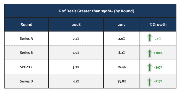 - Average round size at Series A is increasing dramatically.