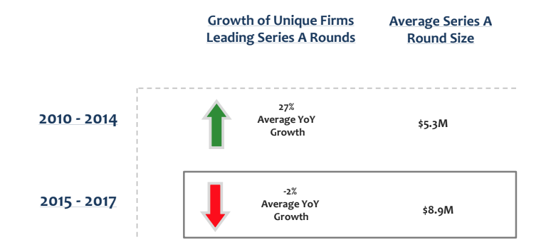 - Average round size at Series A is increasing dramatically.